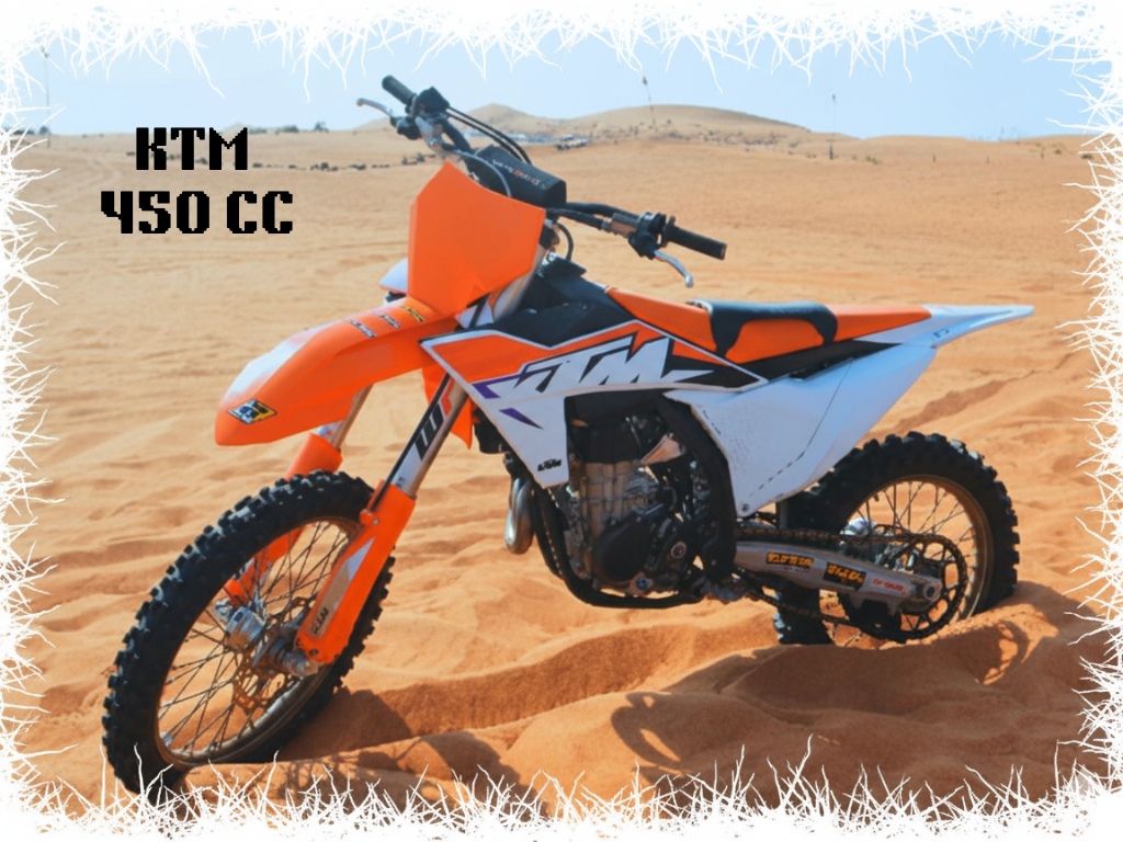 Experience the power of the KTM 450CC with our dirt bike rental in Dubai. Take on the Desert Storm trails with high-performance bikes, expert guidance, and full safety equipment. Enjoy extreme off-road adventure and breathtaking desert views. Book your KTM 450CC ride today for the ultimate Dubai dirt biking experience.