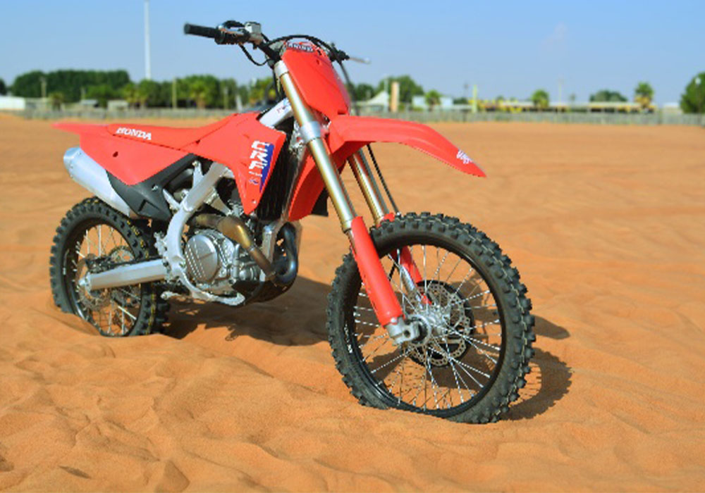 One of the Honda CRF450R’s best features is its suspension system. Excellent steering responsiveness and cornering stability are provided by the 45mm inverted front fork. Because the rear mainshock is completely adjustable, users may customize the Dirt Bike Rental Dubai settings for a variety of riding situations. With strong dual-piston front calipers and a single-piston rear caliper combined with high-performance discs, the braking system is similarly outstanding. Because the brakes provide a well-balanced combination of power and modulation, the Honda engineers have made it simple to handle the dirtbike while ensuring a high degree of safety.